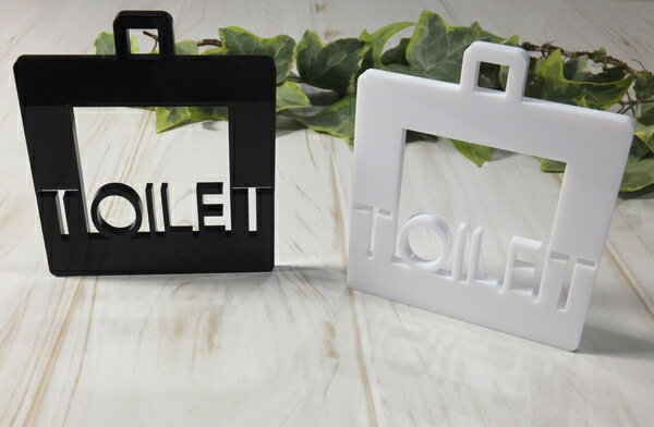 ハンドメイド アクリル製 サインプレート「TOILET」選べるカラー ホワイト&ブラック トイレプレート 壁掛け インテリア 手作り雑貨 白黒 厚さ5mm