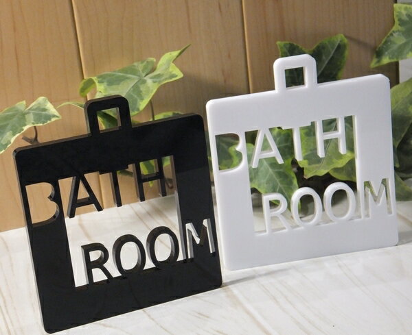 ハンドメイド アクリル製 サインプレート「BATHROOM」バスルーム 選べるカラー ホワイト&ブラック ドアプレート 壁掛け 浴室 インテリア 手作り雑貨 白黒 厚さ5mm