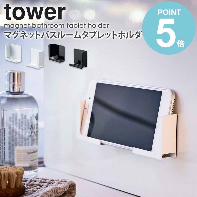 \ 土日も発送 / マグネットバスルームタブレットホルダー タワー tower おしゃれ タブレット スマホ ラック 置き台 スタンド 収納 バスルーム お風呂 壁面 貼り付け iPhone ipad 収納 省スペース シンプル 即納 白 ホワイト/ブラック 山崎実業 yamazaki 4981 4982 works