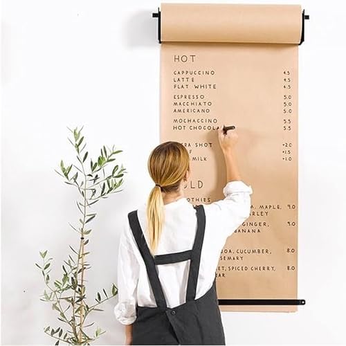 カフェ/レストラン クラフト紙ロールホルダーディスペンサー、壁装飾/メニューノート用、ブラックスチールフレーム 97CM