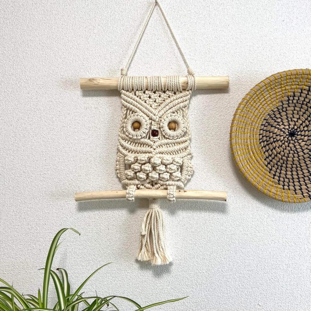 \ブラックフライデー期間10%OFF/ フクロウ マクラメ タペストリー 壁飾り コットン 手作り ウォールデコ 壁掛け おしゃれ シンプル 壁飾り インテリア 手作り品
