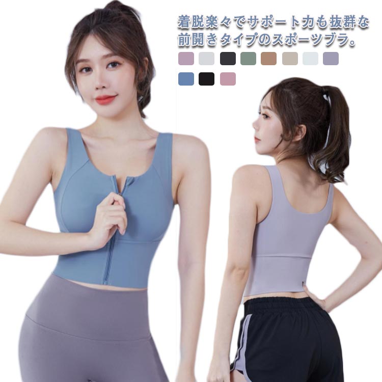 スポーツブラ スポブラ ヨガブラジャー レディース おしゃれ 前開き 送料無料 フィットネス ノンワイヤー ハイサポート ヨガウェア フロントファスナー付き スポーツウェア 揺れない 通気性 吸汗速乾 中学生 シンプル スポーツブラ