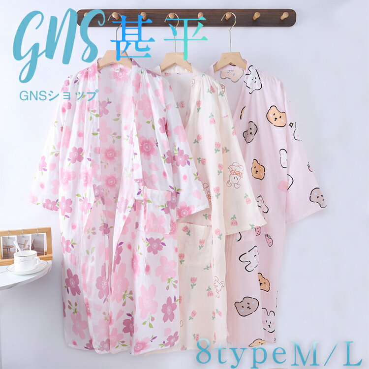 8タイプ選べる ガーゼ 寝巻き 甚平 レディース パジャマ 寝巻き パジャマ ダブルガーゼ 浴衣 和風 前開き ルームウェア 綿 パジャマ 女性 レディース 婦人用 作務衣 作業着夏 かわいい バスローブ ルームワンピース 浴衣 和風 果物 花柄 春夏 薄手 入院 介護 和風