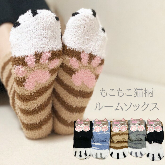 【楽天SS対象商品10%OFF】 お得なクーポン配布中 5足 5種類セット もこもこ靴下 靴下 ソックス 猫 肉球 ルームソックス モコモコ 厚手 冬 防寒 滑り止め あったか かわいい フリーサイズ キャット 動物 アニマル