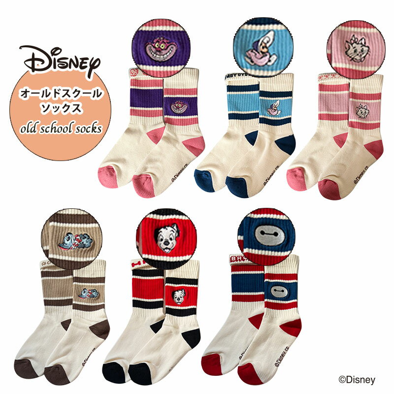 [公式] Disney ディズニー ふしぎの国のアリス チェシャ猫 にっこり アリス ひらり おしゃれキャット マリー にっこり リロ&スティッチ ねそべり 101匹わんちゃん 笑顔 ベイマックス フェイス オールドスクールソックス 23cm〜25cm DS5766J_DS5771J スモール・プラネット
