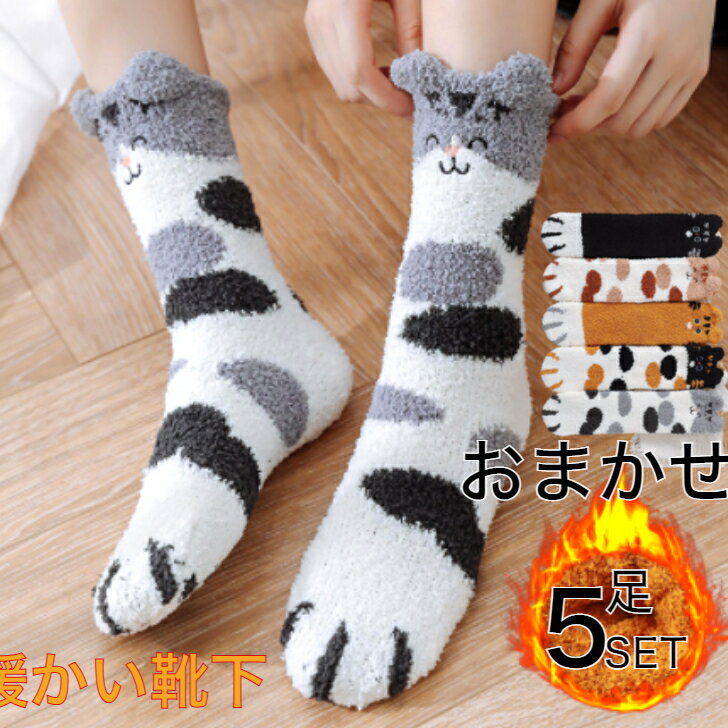 【おまかせ5足セット】靴下 レディース まとめ売り ソックス 5足 猫 cat もこもこ 秋 冬 秋冬 暖かい かわいい オシャレ まとめ買い お買い ルームソックス ネコ アニマル 動物 防寒
