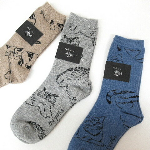 【松尾ミユキ】ねこ柄 G.M.S..ウールブレンドソックス Cat Wool blend socks MM109
