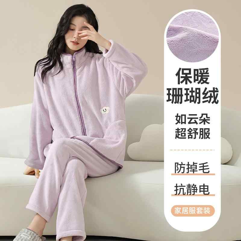 部屋着 オシャレ かわいい コーラル フリース パジャマ レディース 冬 裏起毛 厚手 2024 フランネル 秋冬 ホームウェア スーツ