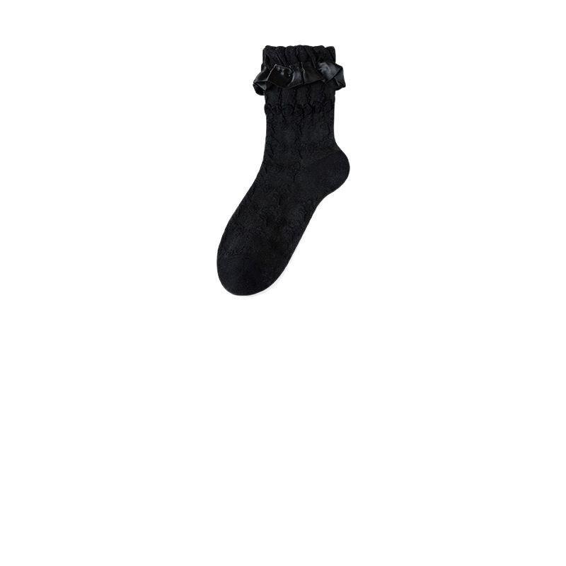 靴下 レディース レース フリル ミドル丈 プリンセス ロリータ風 かわいい クルーソックス 綿混 吸汗性 普段使い お出かけ フェミニン 無地 定番色 白 秋 冬 ローファーコーデ