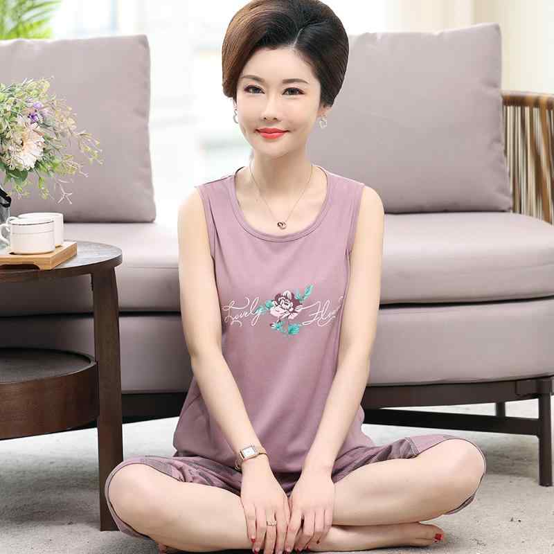 ・カテゴリ: セットアップ・主な素材: 綿 50%以上70%未満・デザイン: プルオーバー・厚さ: 薄手・生地目付け: 121-140g/平方メートル・ネックライン: クルーネック・袖丈: ノースリーブ・パンツ丈: 七分丈・機能: リラックス、通気性、睡眠、部屋着、涼感、快適、外出可能・対象: ミドル世代女性・シーン: アウトドア、部屋着、ホテル、スパ・サイズ展開: M(40-50kg)、L(50-60kg)、XL(60-70kg)、XXL(70-80kg)、3XL(80-90kg)・スタイル: シンプルカジュアル