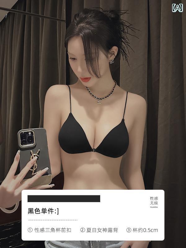 下着 レディース 夏 シームレスブラジャー 薄手 涼しい 貧乳 ギャザー 魅惑 フロント バックル 夏 細 肩 ストラップ 三角 カップ 美しい バックブラ