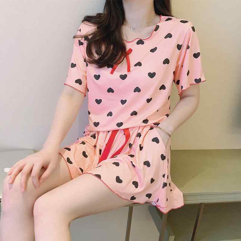 パジャマ レディース ナイトウェア 夏 半袖 薄手 モーダル 綿 韓国 かわいい ツーピース スーツ ガール プリンセス ホーム 服