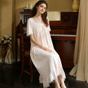 ネグリジェ レディース 薄手 通気性 涼しい 快適 宮廷風 プリンセス フレンチ レトロ かわいい ゆったり ロング丈 半袖 綿 ルームウェア 部屋着 ワンマイルウェア スクエアネック 夏用 白 黄 青 ピンク