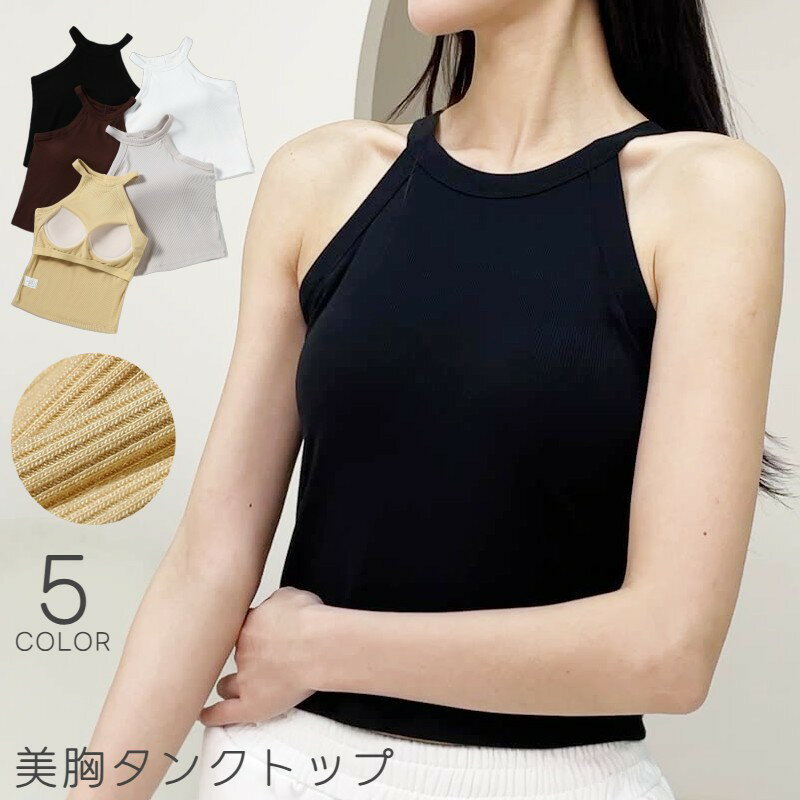 送料無料 タンクトップ カップ付き レディース 女性 婦人 トップス インナー ホルターネック パッド付き 美胸 無地 単色 シンプル かわいい おしゃれ セクシー ブラック 黒 ホワイト 白