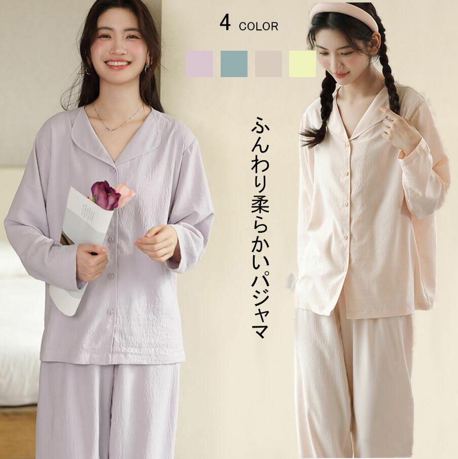 パジャマ 前開き レディース 上下セット 入院 無地 ルームウェア 長袖 北欧 可愛い セットアップ ゆったり 吸汗速乾 トップス パンツ 2点セット 部屋着 寝巻き 快適 おしゃれ 大人 寝間着 出産 産後 春 夏 秋 冬 バレンタインデー ギフト 母の日