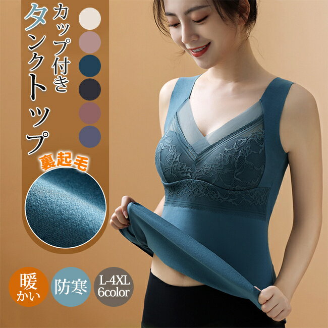 カップ付き 裏起毛 インナータンクトップ 裏起毛タンクトップ インナー レディース トップス 暖か 防寒効果 矯正効果 ヒート レース 花柄 パット付 睡眠 ブラ カップ付きタンクトップ キャミソール セクシー 送料無料