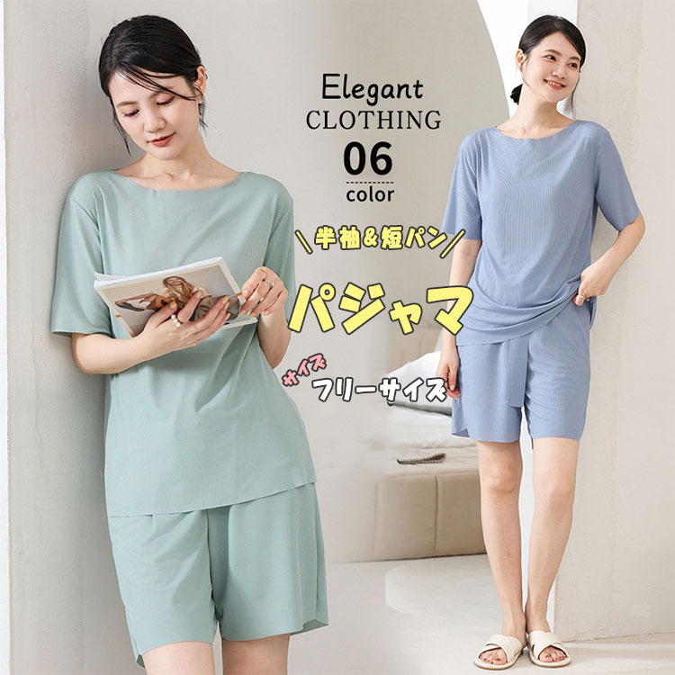 【最大20%OFFクーポン】ルームウエア 冷感 レディース パジャマ 上下セット さらてろパジャマ 半袖 短パン 夏 涼感 ナイトウエア ゆったり 夏 秋 柔軟 優しい肌触り 優しい着心地 幅広ラウンドネック 首元スッキリ 小顔効果 トップス ボトムス セットアップ リラックス
