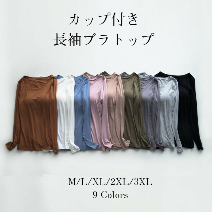 カップ付きインナー Tシャツ レディース 長袖 インナー 長袖Tシャツ ルームウェア 肌着 下着 長袖インナー 部屋着 Uネック ブラトップ 肌着 部屋着 アンダーウエア ストレッチ 伸縮性 締め付けない 響かない シンプル 無地 トップス