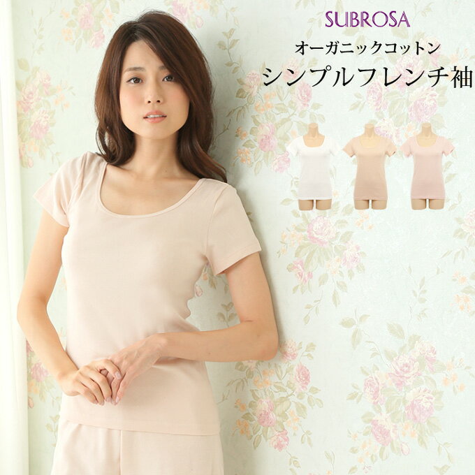 オーガニック コットン シンプル フレンチ袖 インナー 3017 インナーシャツ 日本製 レディース 女性 トップス 綿100% インナー 肌着 無地 シンプル 白 涼しい 大きいサイズ 汗 吸湿性 通気性 M L LL 伸縮性 ストレッチ 春 夏 新作 アンダーウェア ウエア 半袖 送料無料