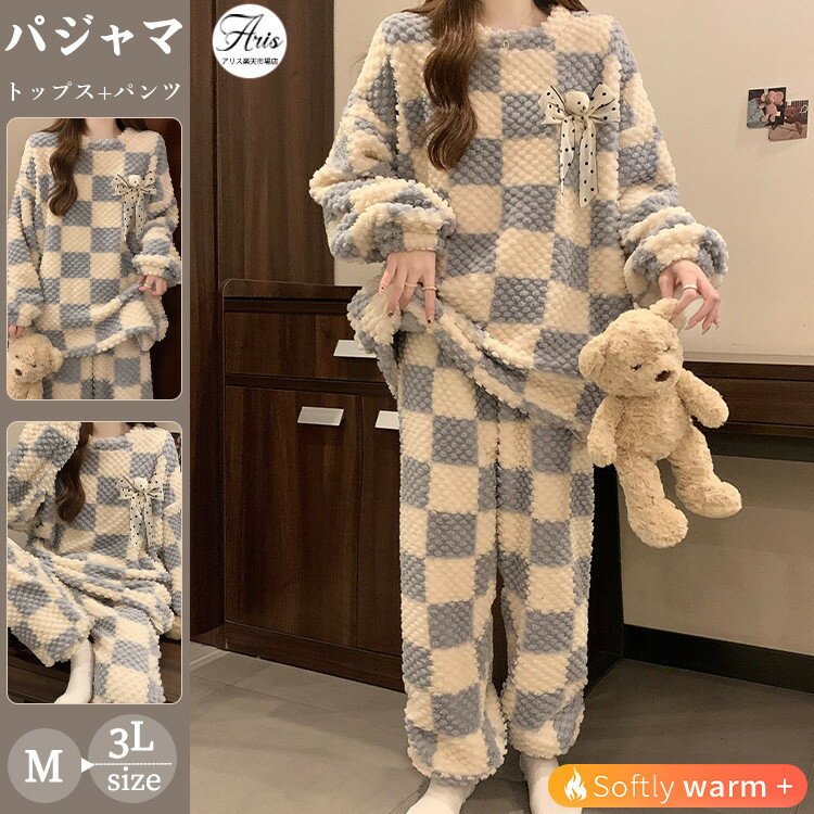 可愛い パジャマ 上下セット ルームウェア チェック柄 蝶結び レディース 中学生 高校生 着ぐるみ セットアップ 冬 秋 長袖 トップス ロングパンツ 部屋着 寝巻き あったか もこもこ ふわふわ 着る毛布 大人 子供 ゆったり カジュアル 暖かい M L LL 3L 大きいサイズ