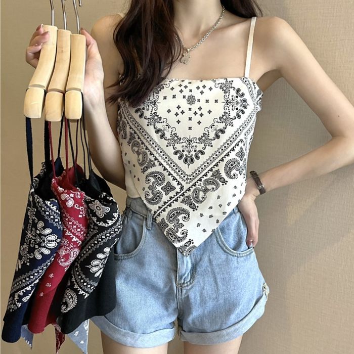 キャミソール ショート丈 トップス ノースリーブ 夏 レディース タンクトップ ペイズリー柄 インナー ビスチェ ストレッチ 重ね着 セクシー おしゃれ 大人
