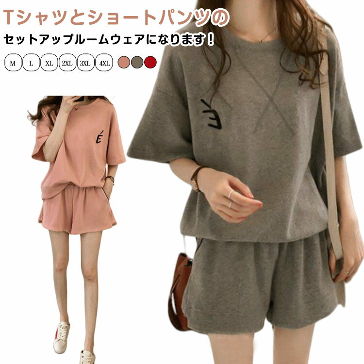 送料無料 ルームウェア パジャマ レディース トップス パンツ 2点セット 上下セット ショートパンツ 薄手 半袖 半ズボン 可愛い お洒落 無地 部屋着 寝巻き ゆったり リラックス ガーリー フェミニン シンプル リモート飲み会 旅行 春 夏 秋