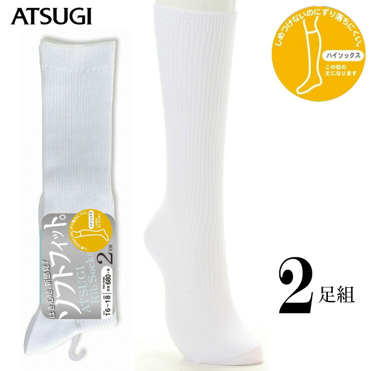 アツギ 靴下 ソフトフィット ハイソックス丈 CK57082 2足組 atsugi ソックス リブソックス スポーツソックス スポーツ 丈夫 抗菌 レディース キッズ ジュニア(03484)