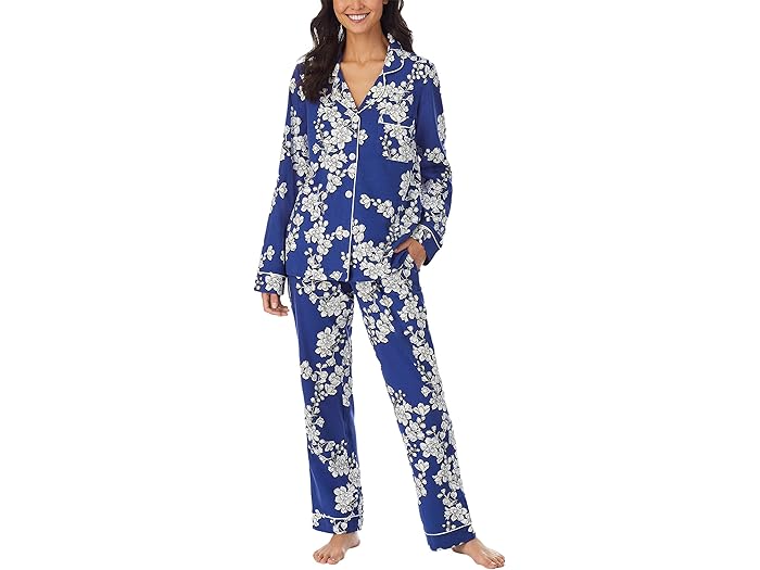 (取寄) ベッドヘッドパジャマズ レディース ロング スリーブ クラシック ノッチ カラー パジャマ セット (コットン スパンデックス) Bedhead PJs women Long Sleeve Classic Notch Collar Pajama Set (Cotton Spandex) Navy Shadow Blossom