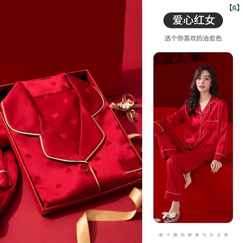 ルームウェア レディース ラン シャの 干支の 女性用 赤い パジャマ 2025秋冬 蛇 年 シルクの メンズ ウェディング スーツ ホームウェア