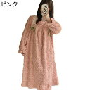 |  フランネル ワンピース 蝶結び フリル パジャマ 長袖 秋冬向き ロングネグリジェ 寝巻き スクエアネック ナイトウェア 裹起毛 寝間着 もこもこ 厚手 おしゃれ 通気性 可愛い 快適 昼寝着 家着