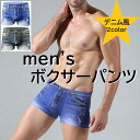 送料無料 ボクサーパンツ 単品 ボックスショーツ ボクサーブリーフ メンズ 男性用 下着 インナー 前閉じ 前とじ デニム風 ジーンズ風 おしゃれ かっこいい ユニーク アンダーウェア 普段使い 大きいサイズあり ギフト プレゼント 紳士用