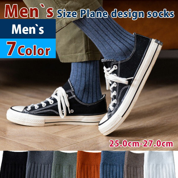 ソックス 靴 クルーソックス メンズ 25.0-27.0 7Color 淡い色 綿 コットン 通勤 通学 無地 カラフル カラー豊富
