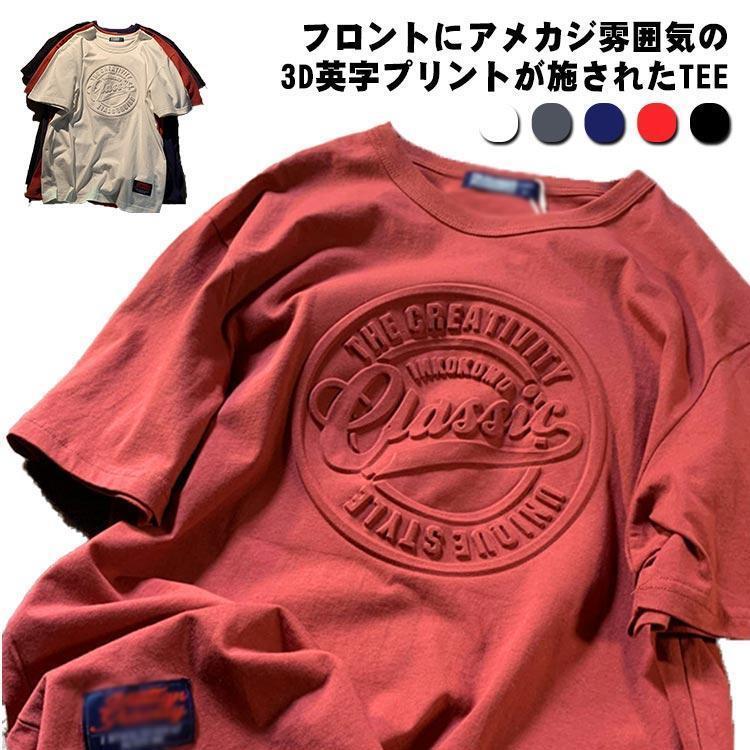 tシャツ カットソー 半袖 アメカジ メンズ 古着風 英字 3Dプリント 無地 シンプル レトロ トップス アメリカン おしゃれ ストリー