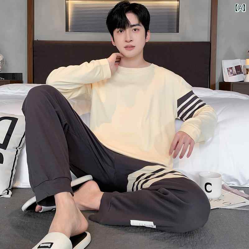 パジャマ メンズ 男性用 春秋 長袖 長ズボン 上下セット 綿 ストライプ柄 部屋着 リラックスウェア 寝巻き ルームウェア 普段使い άν