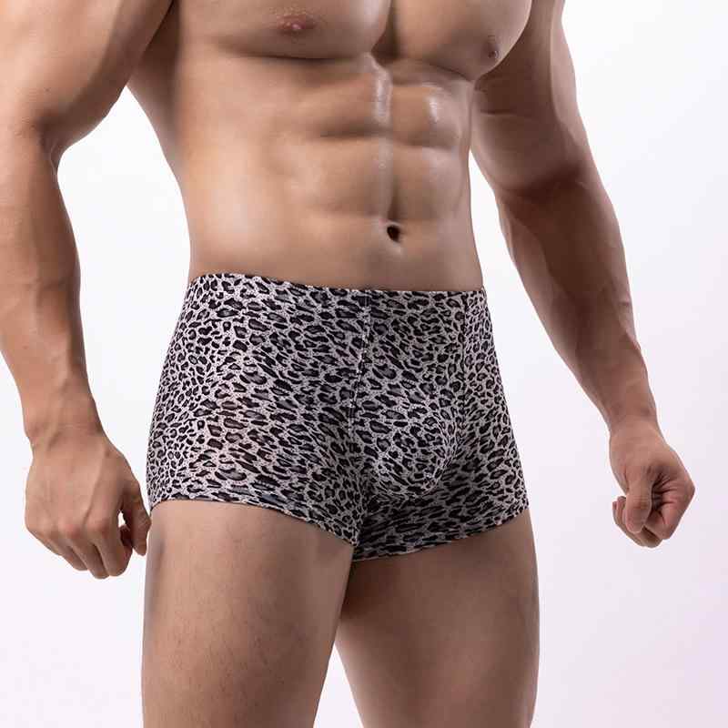 パンツ 男性用 下着 ヒョウ柄 ローライズ ボクサーパンツ ポリエステル 通気性