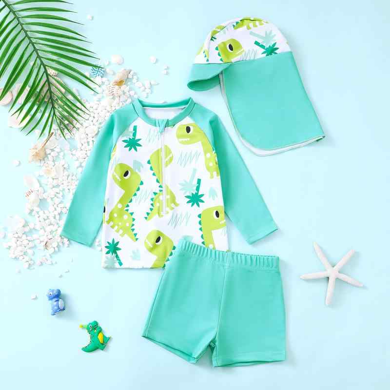 水着 ベビー 男の子 長袖 スイムウェア ショートパンツ 帽子 3点セット 恐竜柄 春夏 秋 70cm 80cm 90cm 100cm 110cm 120cm・対象: 男の子・スタイル: スポーツ・セット内容: トップス.パンツ.アウター・対象年齢: 1~3歳 (80~100cm)・シーズン: 夏.春.秋・袖丈: 長袖・パンツ丈: 短パン・生地加工: 柔らか обработка・・柄: 卡通・素材: ニット.ポリエステル82%.スパンデックス18%・レベル: B類・開閉: ジッパー・色: ビリジャン.エメラルド.青・対応身長: 70cm.80cm.90cm.100cm.110cm.120cm・カテゴリ: 子供用セットアップ