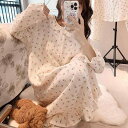 ネグリジェ パジャマ レディース かわいい 女の子 花柄 寝間着 女性 春秋 薄手 綿 ガーゼ 女性 長袖 ホーム サービス 夏