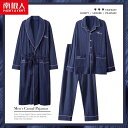 ネグリジェ メンズ 春秋 長袖 コットン ロング バスローブ パジャマ 大きいサイズ ホームウェア 3点