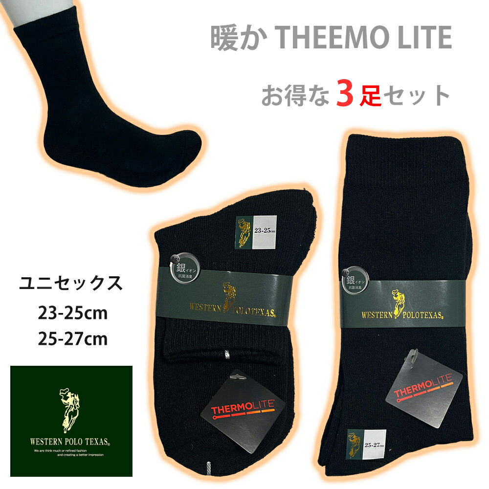ウエスタンPOLO THERMOLITE 温感素材 暖か ソックス 靴下 ローカット クルー 3足セット