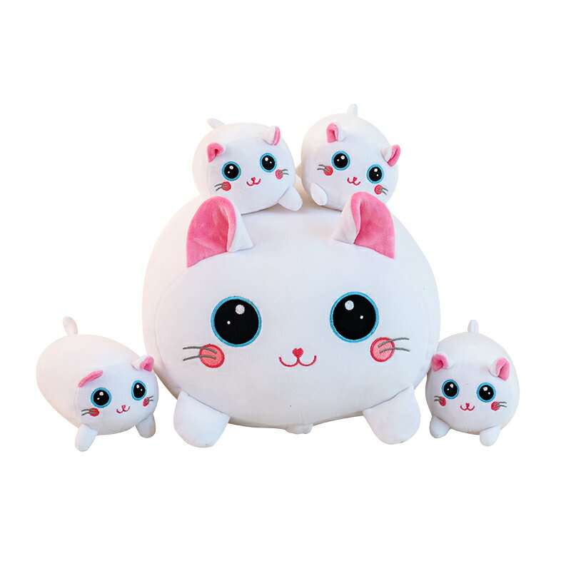 新品 抱き枕 猫 ぬいぐるみ 大きい 猫 動物 可愛い-ママの猫と4匹の子猫がお腹に-ねこ ネコ だきまくら 抱き枕 動物 白猫のぬいぐるみ だきまくら もちもち ふわふわ 誕生日プレゼント 男の子 女の子 クリスマスプレゼント 40cm