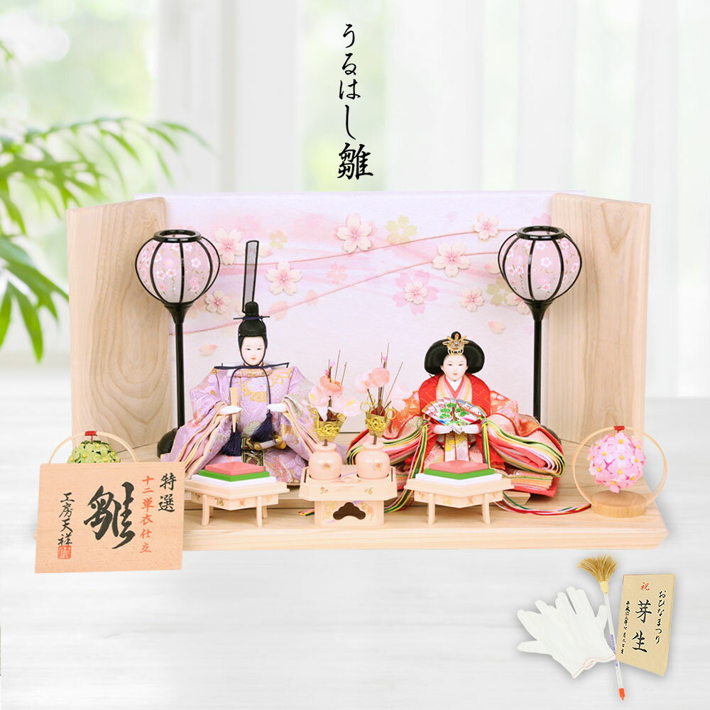 雛人形 ひな人形 ぷり姫 コンパクト 親王飾り 小三五親王 うるはし雛シリーズ 桜和紙三曲屏風 桜フレーム 初節句 お祝い 桃の節句 ひな祭り