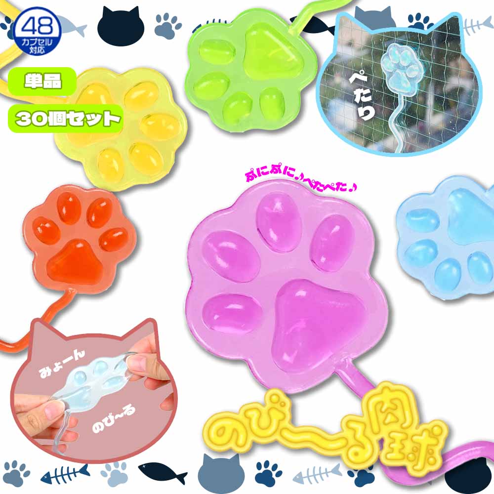 ☆送料無料・ネコポス対象☆のびーる肉球 全5種 (単品/30個セット) 【 スクイーズ のびる キッズ 猫 ネコ 景品 ガチャガチャ 子供会 お祭り ヨーヨー やわらか 可愛い 】