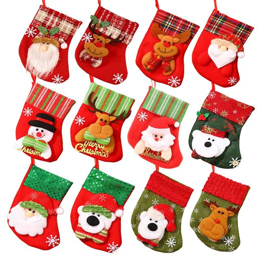 クリスマスの靴下12枚セットクリスマスソックス3D立体靴下サンタクロース雪だるま熊トナカイクリスマスツリー暖炉飾りクリスマスプレゼント新年祝い飾り可愛いプレゼント袋ギフトバ…