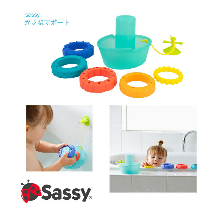 【Sassy】かさねてボート 6か月~ ◆ タワー リング 碇 舟 船水遊び お風呂 バストイ パズル 知育玩具 カラフル ブルー グリーン レッド イエロー 子ども 赤ちゃん キッズ ベビー お誕生日 プレゼント ファーストトイ キッズ アソート インポート ダッドウェイ サッシー