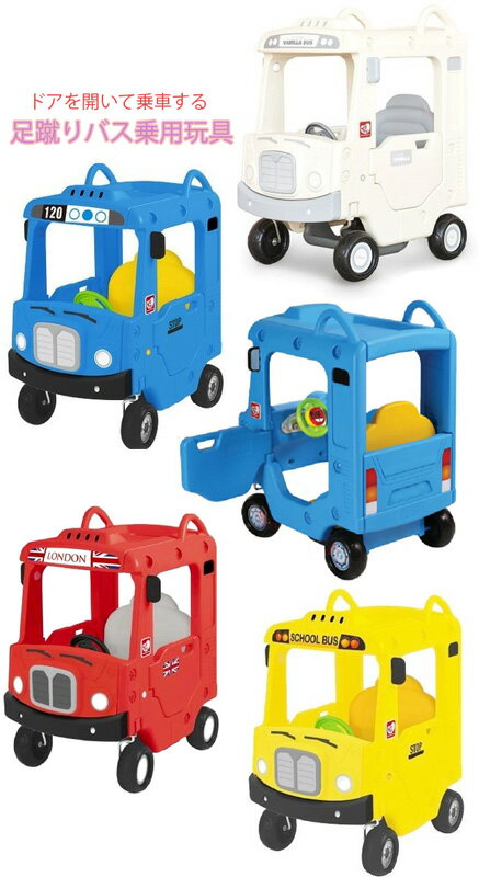 屋根付き足漕ぎ乗用玩具ドアも開くバスライドオンカーレッド ブルー ホワイト イエロー地面を蹴って足蹴り乗用玩具公園の人気者間違いなし ピンク レッド グリーン足置きフットレスト搭載乗り物おもちゃ heavy machine