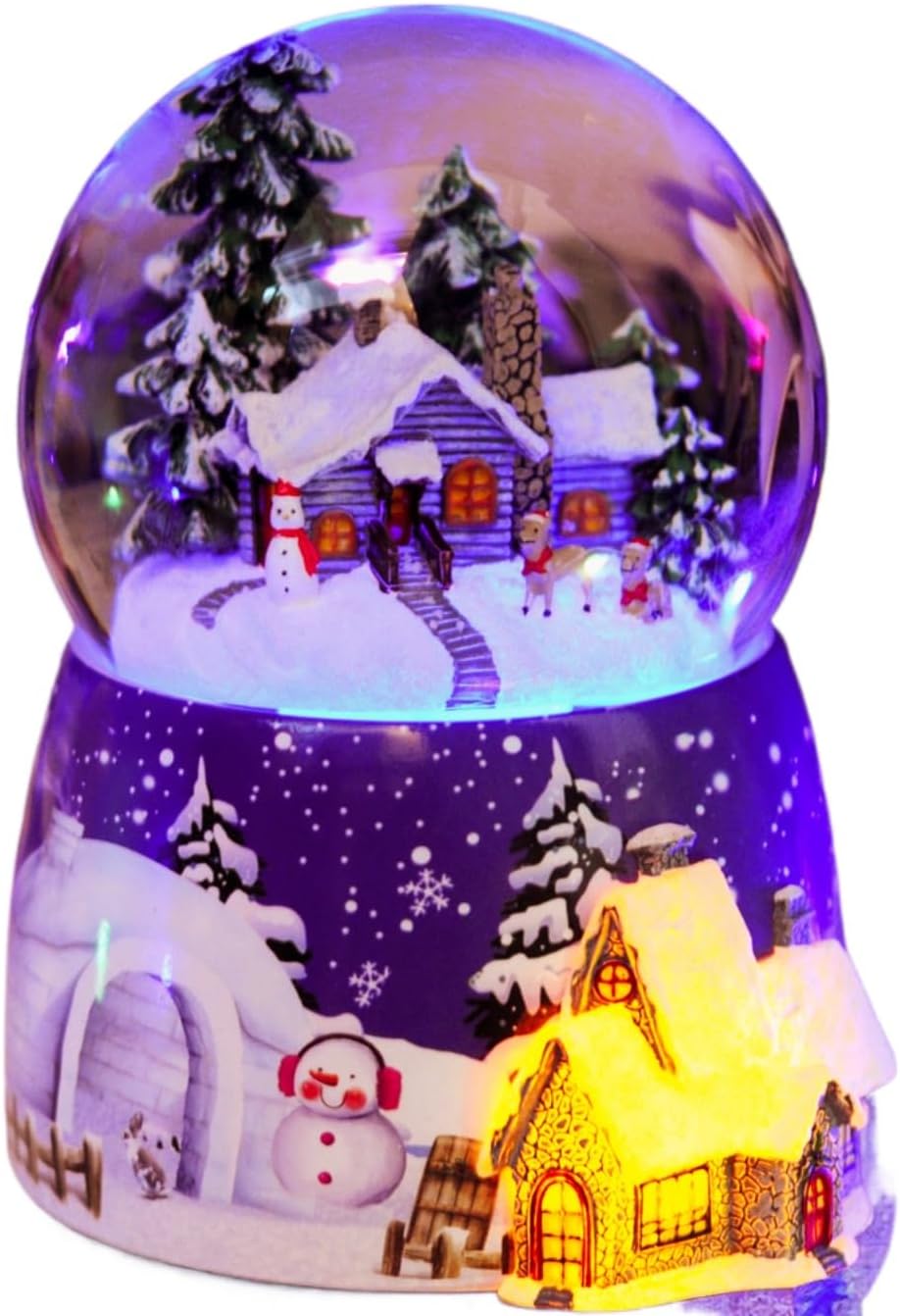クリスマス スノーハウスオルゴール飾り スノードーム クリスマスオルゴール 回転 音楽 LEDライト 回転列車 樹脂クリスマス置物飾り 電動 クリスマスタウン クリスマススノーグローブ サンタ 雪だるま 子供 誕生日 クリスマスプレゼント デコレーション