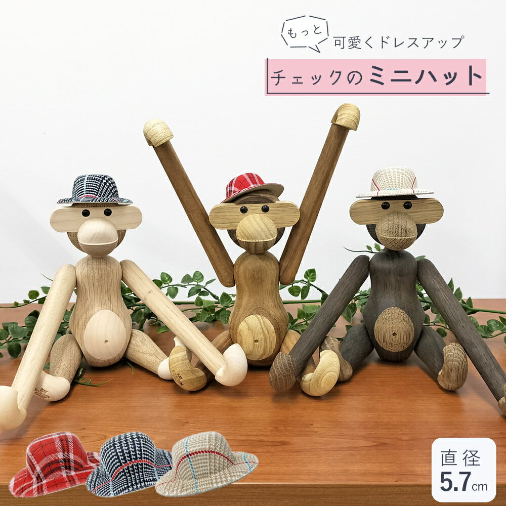 オブジェ 人形用 帽子 [ チェック の ミニハット ] レッド ブルーブラック ベージュ 木製オブジェ ハット アクセサリー 人形 ぼうし タータンチェック 千鳥格子 アレンジ ぬいぐるみ 着せ替え ドレスアップ 置物 春 夏 秋 冬 飾り 季節 装飾 ディスプレイ