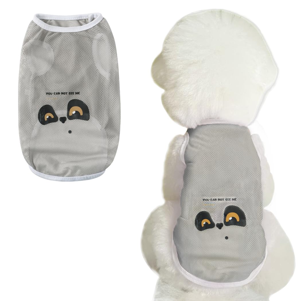 【送料無料】AmzBarley 犬 服 春夏 ベスト メッシュ ひんやり 動物柄プリント 犬 服 夏 シャツ 薄い 通気性 涼しい 軽量 速乾 犬服夏用 シャツ 子犬 小型犬 中型犬 ペット服 洋服 タンクトップ 袖なし 猫服 犬 夏服 両足 おしゃれ 外 クール 熱中 色:グレー、サイズ:S