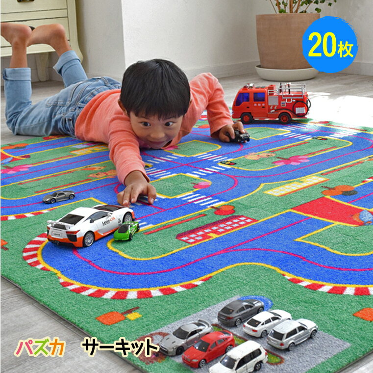 パズカサーキット 20枚×125cm×100cm男の子に大人気 育児 ロードラグ プレイマット パズルマット プレゼント 子供部屋 道路 ジョイント 知育玩具 トミカ ミニカー 誕生日プレゼント 日本製 カーペット 1歳 2歳 3歳 4歳 5歳
