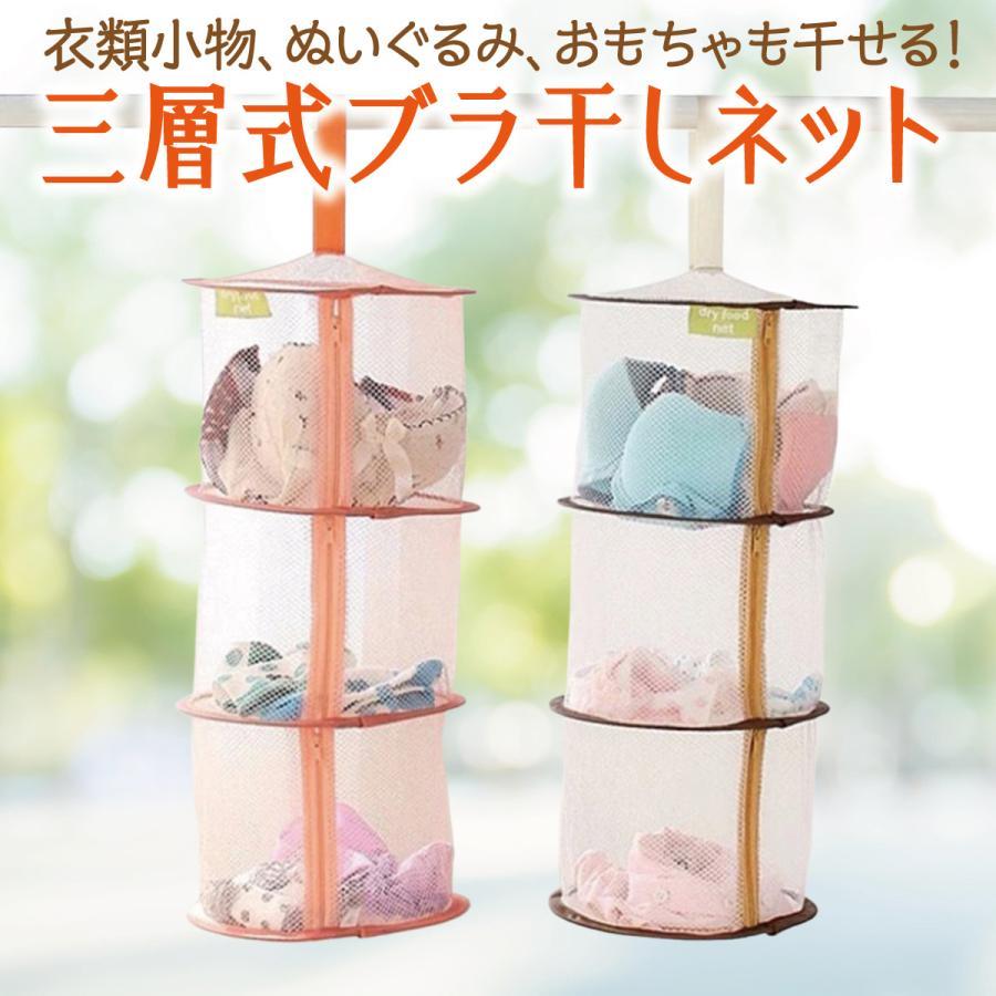 折りたたみ式3段式ブラ干しネットブラジャーをハンガー干しにすると、カップが変形する。ストラップが伸びる。そんな悩みをブラ干しネットが解消!衣類の型崩れを防ぎ干す場所を取らない。ファスナー付きだから中身が落ちない。使わない時はコンパクトに収納。